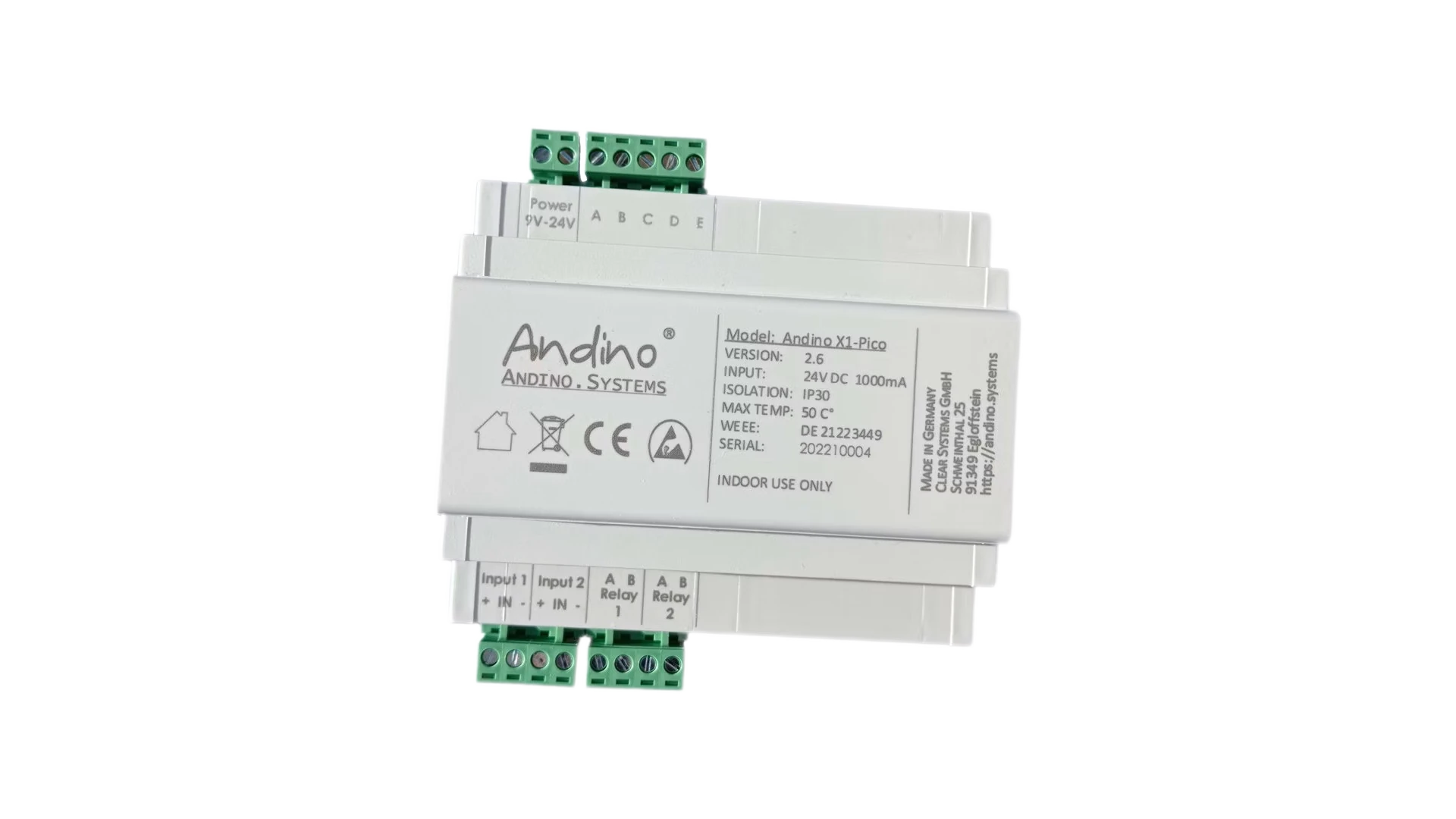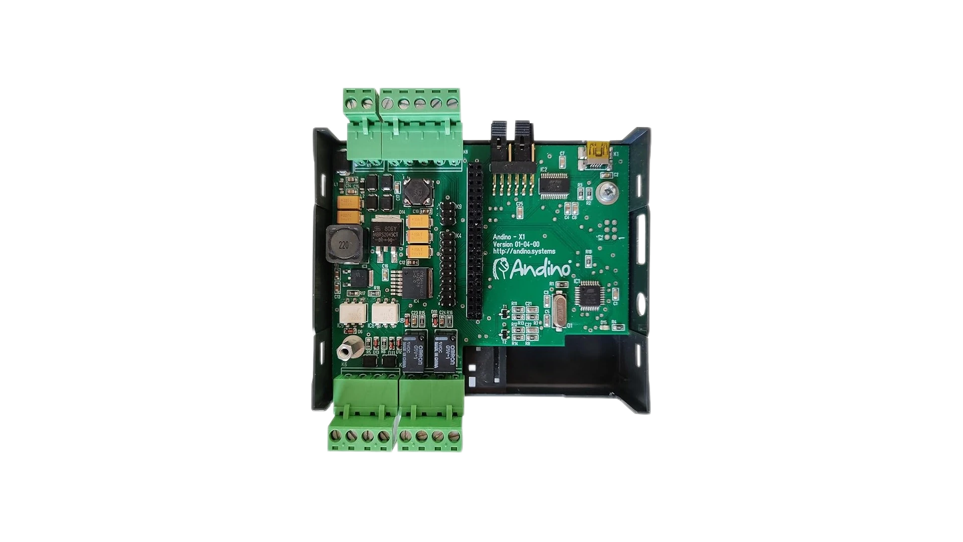 The Andino X1 is a compact industrial programmable controller with a baseboard for the CM4 that can be integrated into any switch cabinet thanks to its DIN-rail mounting. The mainboard has two relay outputs and is designed to connect two digital inputs with a maximum voltage input of 24V/DC. The mainboard also has an integrated power supply for the baseboard and the CM4 (12V-30V/DC). The CM4 and baseboard are protected against voltage and current spikes on the power line by EMC protection circuits.